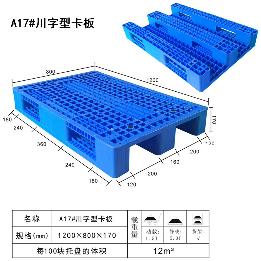 | Color | Low blue,blue,yellow,black,green,red,white,grey,other | Dynamic load | 1.5T | Material | PP,PE | Model | Four-way | Scope | Pharmaceutical, paper making, printing, electronic and electrical appliances, chemicals, clothing, textiles, warehousing and logistics | size | 1200×800×170 | Static load | 5T | Type | Sichuan word | 100 volume | 12m3 | Shelf | √ |