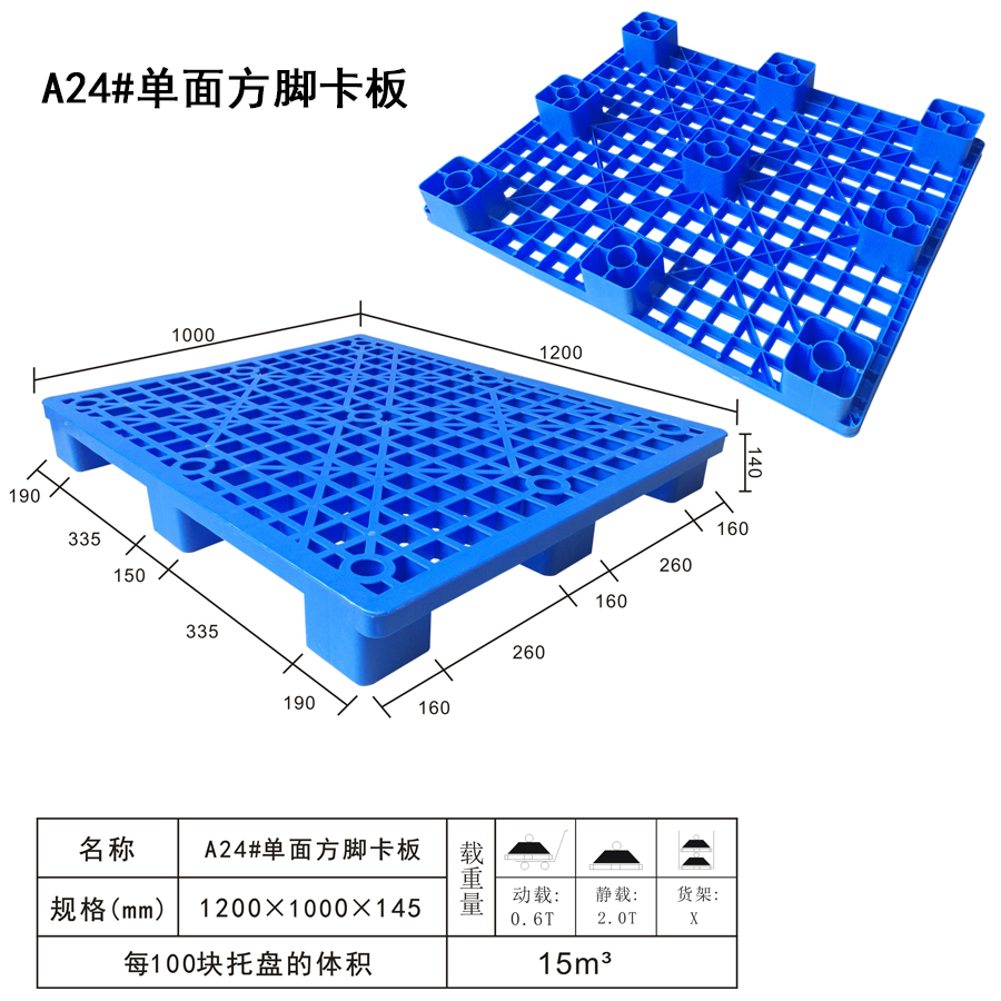 | Color | Low blue,blue,yellow,black,green,red,white,grey,other | Dynamic load | 0.6T | Material | PP,PE | Model | Four-way | Scope | Food pharmaceutical and chemical industries such as textile parts factory warehouse logistics transportation | size | 1200×1000×140 | Static load | 2T | Type | Single side | 100 volume | 15m3 | Shelf | X |