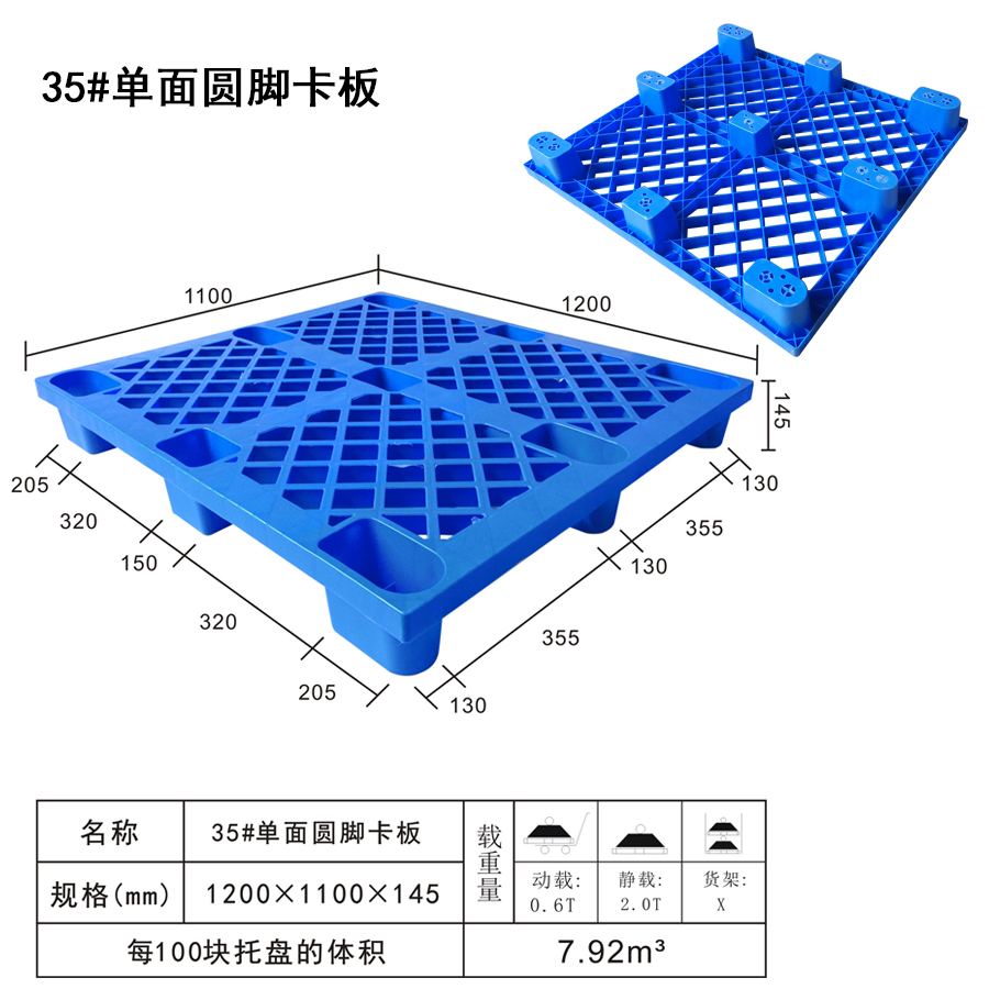 | Color | Low blue,blue,yellow,black,green,red,white,grey,other | Dynamic load | 0.6T | Material | PP,PE | Model | Four-way | Scope | Food pharmaceutical and chemical industries such as textile parts factory warehouse logistics transportation | size | 1200×1000×145 | Static load | 2T | Type | Single side | 100 volume | 7.92m3 | Shelf | X |