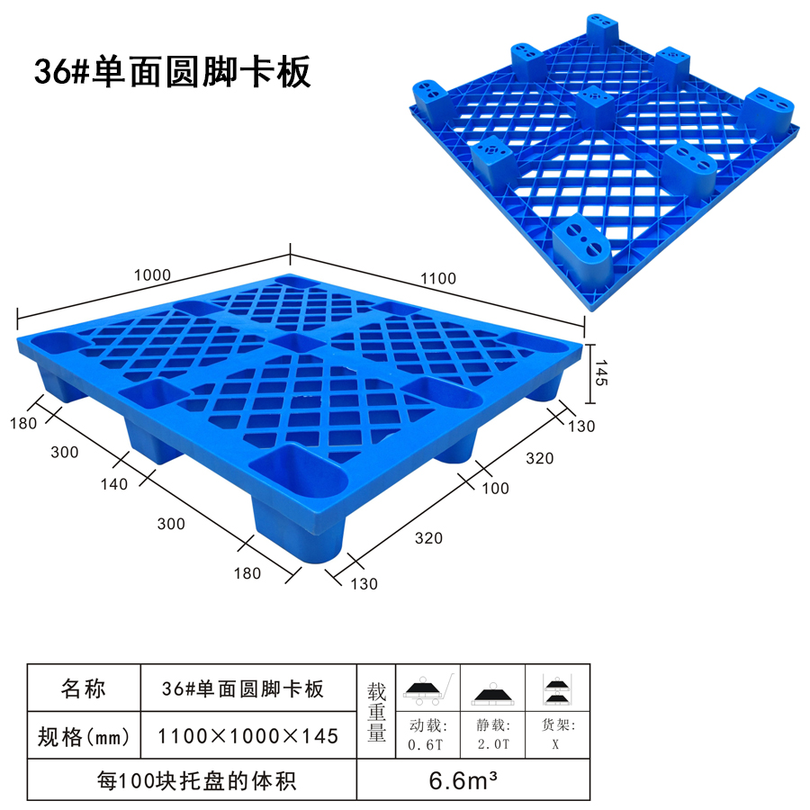 | Color | Low blue,blue,yellow,black,green,red,white,grey,other | Dynamic load | 0.6T | Material | PP,PE | Model | Four-way | Scope | Food pharmaceutical and chemical industries such as textile parts factory warehouse logistics transportation | size | 1100×1000×145 | Static load | 2T | Type | Single side | 100 volume | 6.6m3 | Shelf | X |