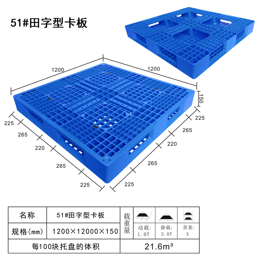 | Color | Low blue,blue,yellow,black,green,red,white,grey,other | Dynamic load | 1T | Material | PP,PE | Model | Four-way | Scope | Container, stacking, handling and transport of goods placed, import and export trade, warehousing and logistics | size | 1200×1200×150 | Static load | 5T | Type | Tian word | 100 volume | 21.6m3 | Shelf | √ |