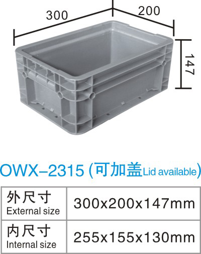 | Color | Low blue,blue,grey | Dynamic load | -- | Material | PP,PE | Model | -- | Scope | TOYOTA automobile main engine factory and its supporting parts manufacturing factory | size | 300×200×147 | Static load | Type | EU box | 100 volume | -- | Shelf | -- |